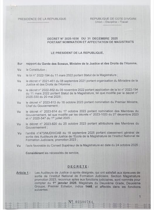 Le décor est planté. Le décret d’affectation des magistrats civils de la promotion 2021 continue d’afficher, imperturbable, le 1er janvier 2024 comme date d’entrée dans la profession. Une date figée comme une mauvaise blague, pendant que leurs homologues militaires de la même promotion bénéficient, eux, d’un décret plus généreux, estampillé 1er janvier 2023. Même promotion, deux calendriers. L’égalité devant le temps aurait-elle été abrogée ?